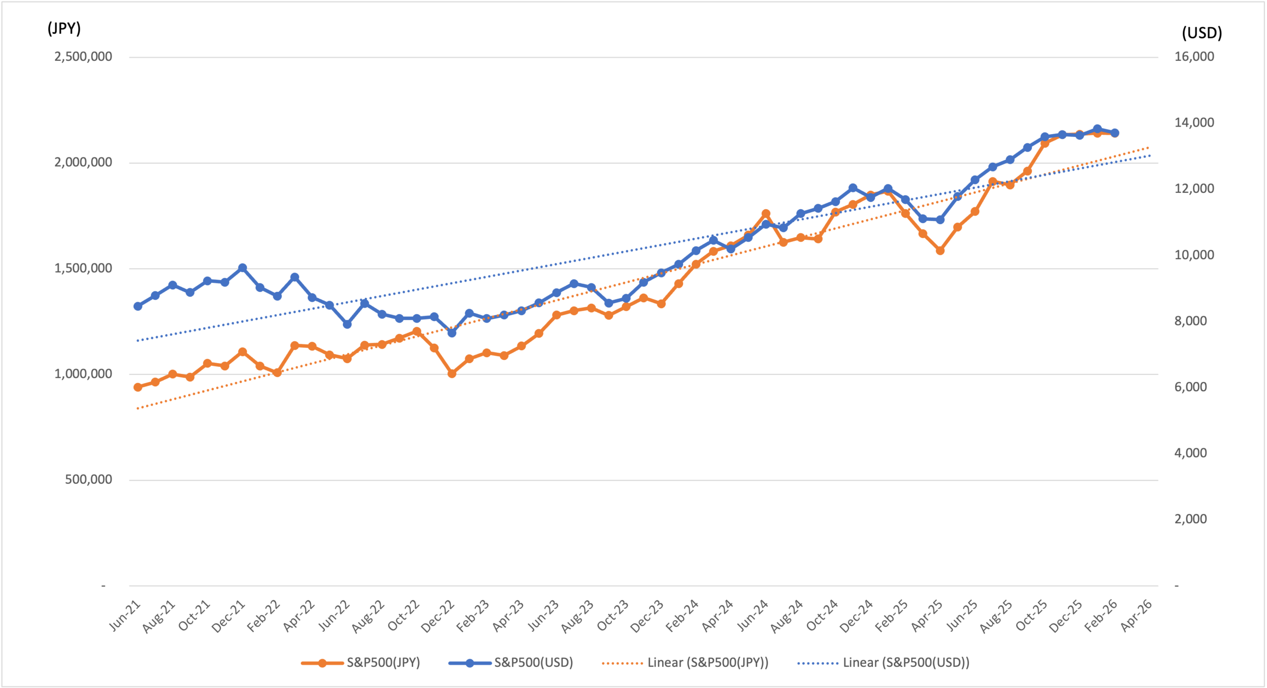- S&P500資産(US$) 2026年の平均月利:0.3%